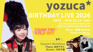 yozuca* BIRTHDAY LIVE 20262026.03.14(sat)Day time:Open/13:30 Start/14:00Night time:Open/...